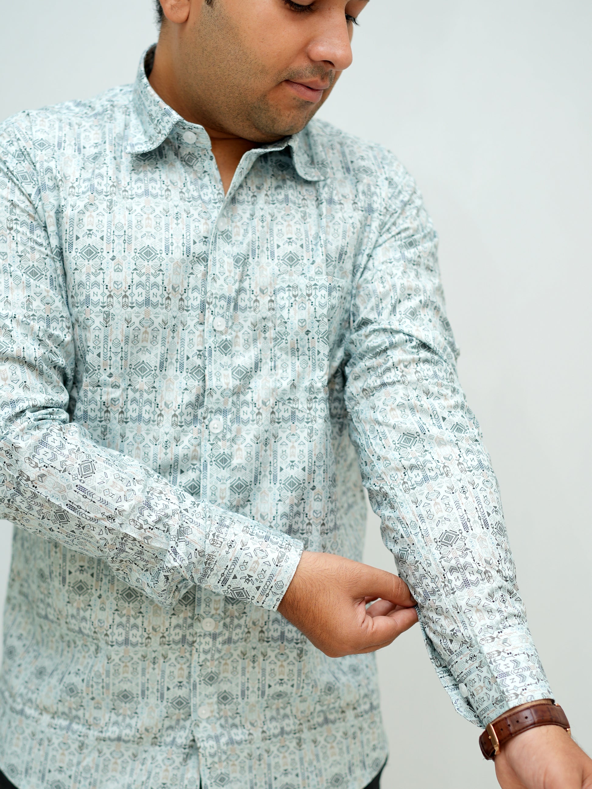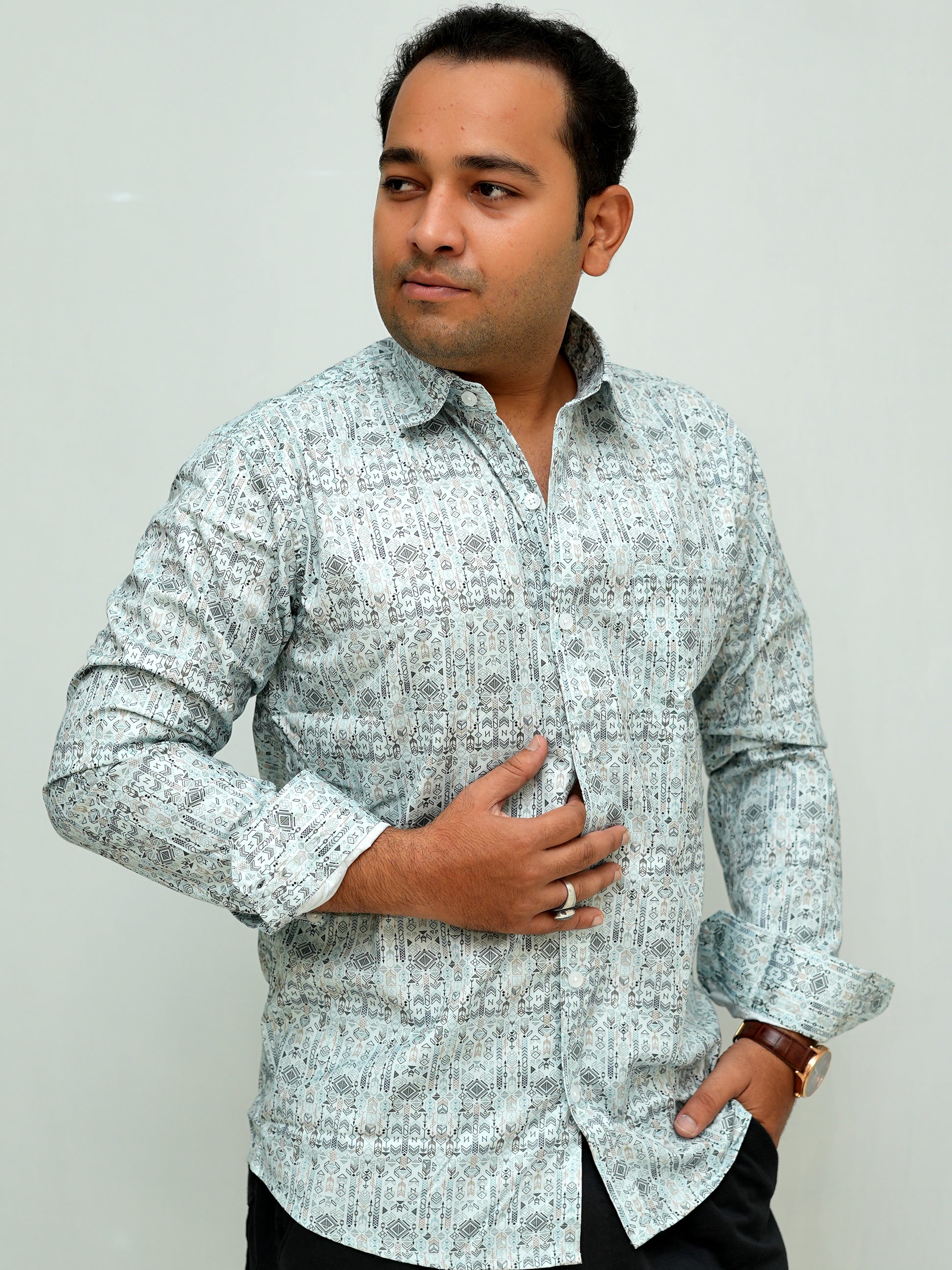 Supre fine abstract printed opaque casual shirt ,has a spread collar, button placket, long regular sleeves.